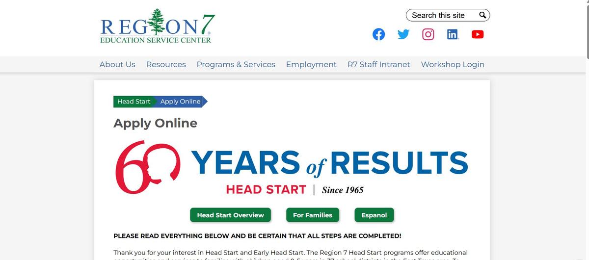 Region 7 Education Service Center Head Start is officially accepting applications for the 2026–2027 school year, offering early childhood education services designed to support growth, development, and school readiness.